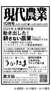 【広告】朝日新聞・読売新聞・毎日新聞 9/8~9/11掲載 全国紙 2025.09.112025.09.08 ■お求めはお近くの書店、または「田舎の本屋さん」へ 現代農業10月号 うかたま 2025秋・80号