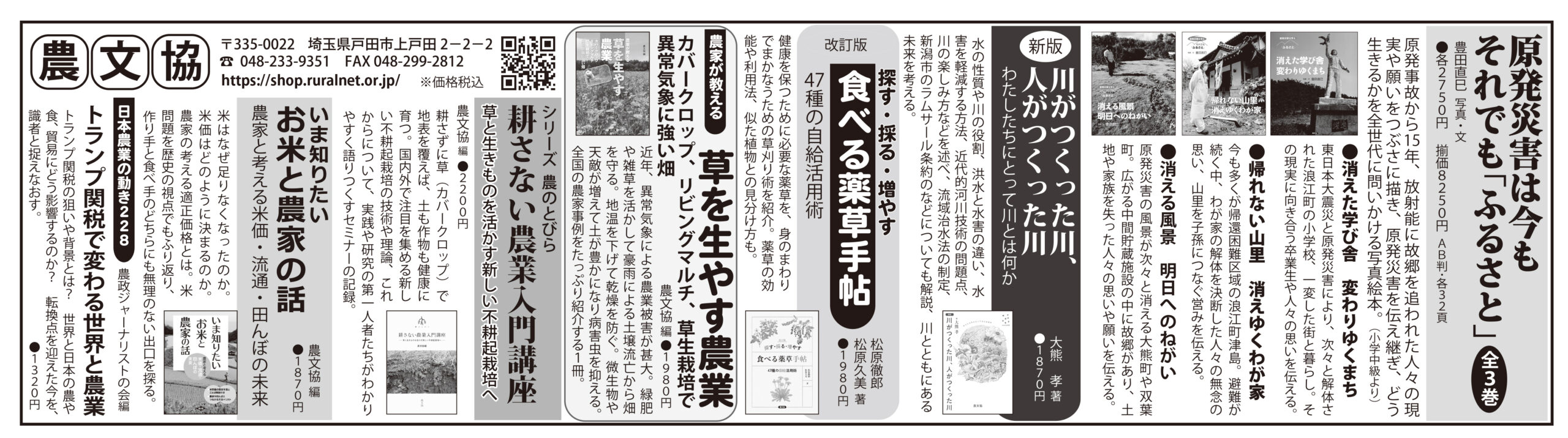 【広告】日本農業新聞3/4 掲載 日本農業新聞 2026.03.052026.03.04 ■日本農業新聞掲載お求めはお近くの書店、または「田舎の本屋さん」へ イネ大事典現代農業26年01月号高温時代の米つくり 超きほんのきよくわかる イネの生理と栽培イラストでわかる 新版 安心イネつくりイネつくりの基礎(復刊)新版 解剖図説 イネの生長イネの根だれでもできる 有機のイネつくり農機具屋が教える 機械修理・メンテ術DVDブック トラクタ名人になる!