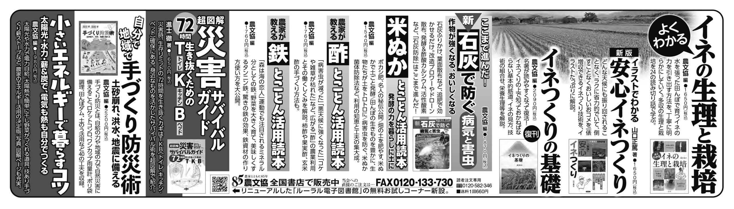 【広告】日本農業新聞4/25 掲載 日本農業新聞 2026.04.25 ■日本農業新聞掲載お求めはお近くの書店、または「田舎の本屋さん」へ よくわかる イネの生理と栽培イラストでわかる 新版 安心イネつくりイネつくりの基礎(復刊)新・石灰で防ぐ病気と害虫米ぬか とことん活用読本農家が教える 酢とことん活用読本農家が教える 鉄 とことん活用読本超図解 災害サバイバルガイド自分で地域で 手づくり防災術小さいエネルギーで暮らすコツ